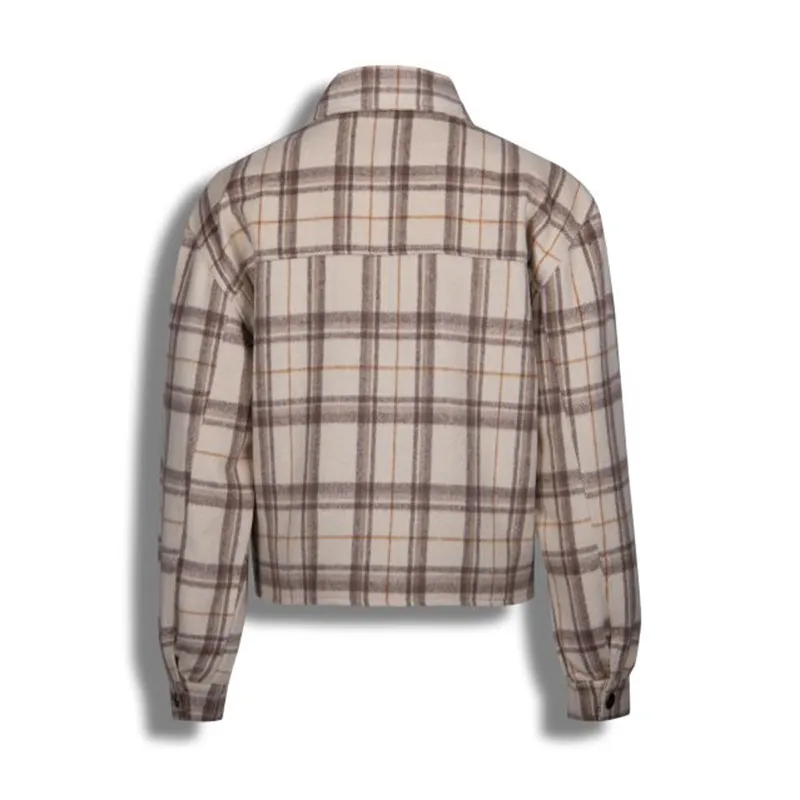 Эта женская куртка — официальный заказ нашего завода, тщательно выполненный, чтобы воплотить в себе как американский винтажный стиль кэжуал, так и характерную текстуру тартана. Изготовленная из бежево-коричневой твидовой ткани тартан, она отличается тонким узором, излучающим теплое ретро-очарование, с классическими элементами американского западного тартана, обеспечивающими высокую узнаваемость. Воротник с лацканами и металлическими пуговицами, два нагрудных кармана и укороченный силуэт гармонично сочетаются с винтажно-кежуальной эстетикой. Свободный, удобный крой подойдет женщинам, которые ищут для своего гардероба «американский винтаж, клетчатую текстуру и непринужденный стиль», демонстрируя тщательное мастерство нашей фабрики в создании женской ретро-кежуальной верхней одежды.