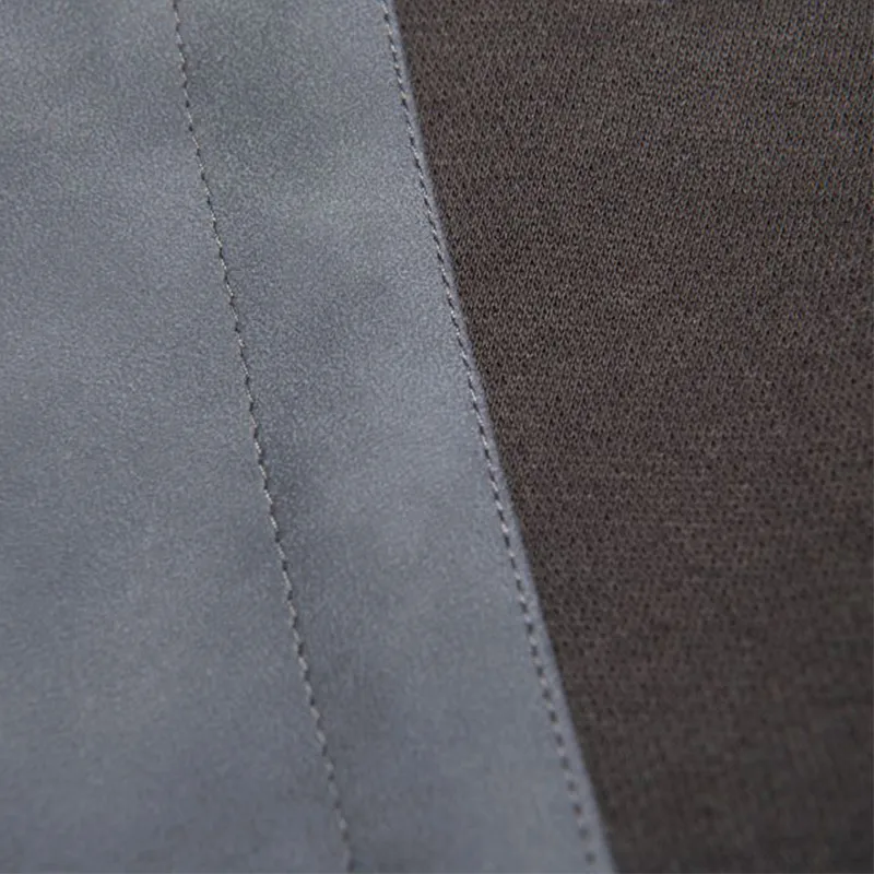 С точки зрения качества изготовления, черная застежка-молния прочная и плавная, а швы на стыках замши и трикотажа тонкие и ровные, что гарантирует их сохранность даже при длительном ношении. Готовая одежда проходит тщательную многомерную проверку, включающую внешний вид, размеры и прочность материала, что гарантирует стабильное и надежное качество.