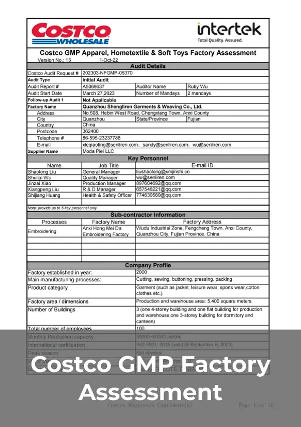 Мы являемся интегрированным производственно-торговым предприятием с собственной фабрикой. Наш завод расположен в городе Цюаньчжоу провинции Фуцзянь, его площадь составляет около 8000 квадратных метров, а штат насчитывает 350 сотрудников. Мы имеем международные сертификаты, включая ISO9001 и BSCI, и прошли аудит социальной ответственности для таких брендов, как Costco, Walmart и Disney.