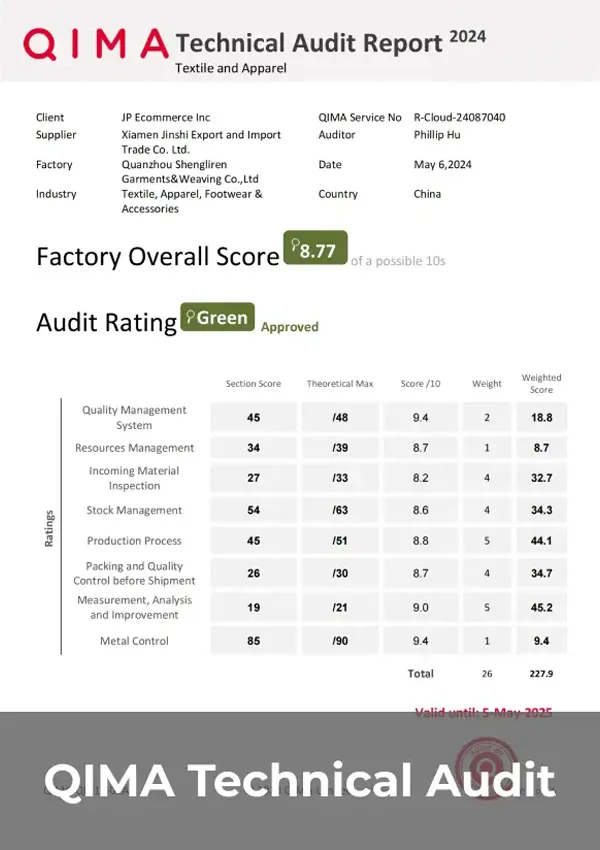ООО Сямынь Цзиньши Импорт Экспорт, основанная в 1998 году, является интегрированным промышленным и торговым предприятием, специализирующимся на исследованиях, разработке, производстве и импорте/экспорте одежды. Компания владеет собственным производственным предприятием Шэнлижэнь площадью 15 000 квадратных метров, на котором работает около 350 квалифицированных рабочих. С ежемесячной производственной мощностью 100 000 единиц одежды, компания обладает стабильными, крупномасштабными производственными возможностями и поддерживает строгие стандарты обеспечения качества.